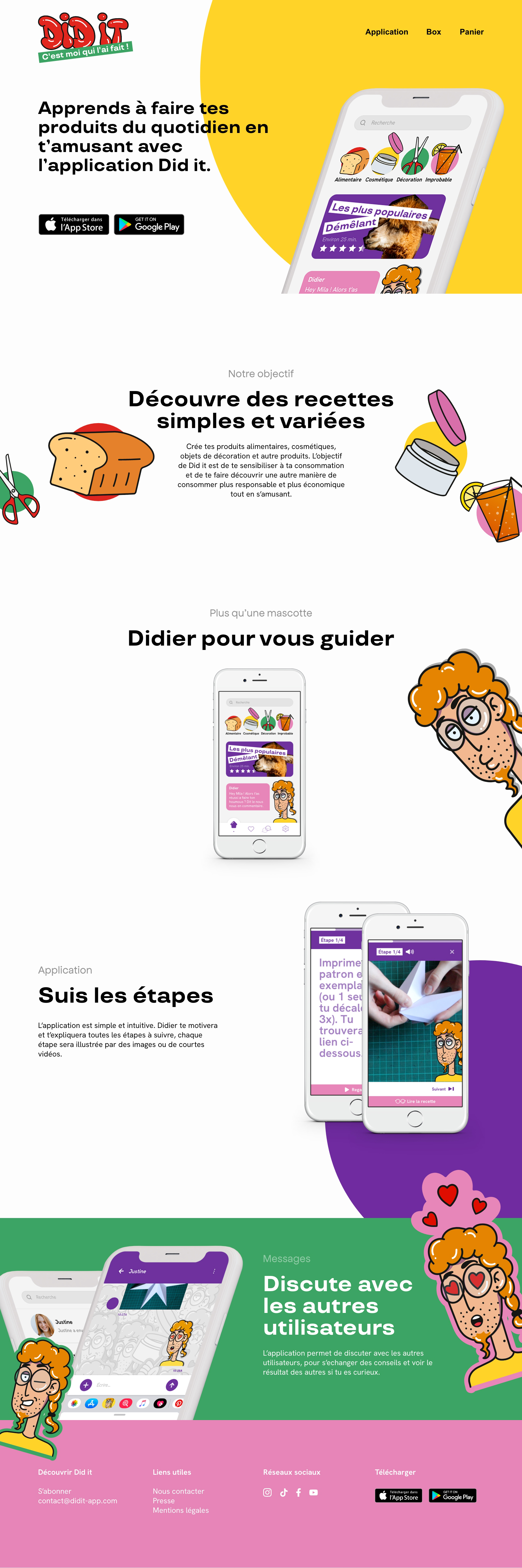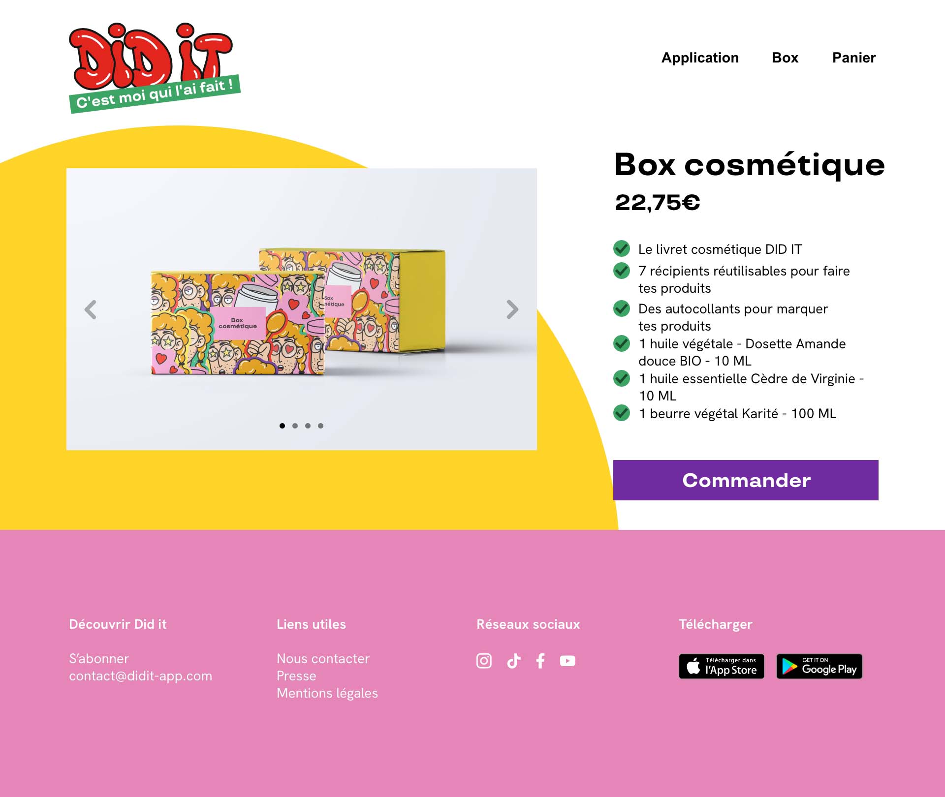 Le site internet sert à présenter l’application et ses fonctionnalités. On peut également y trouver les deux box « Did it » : cosmétique et alimentaire.